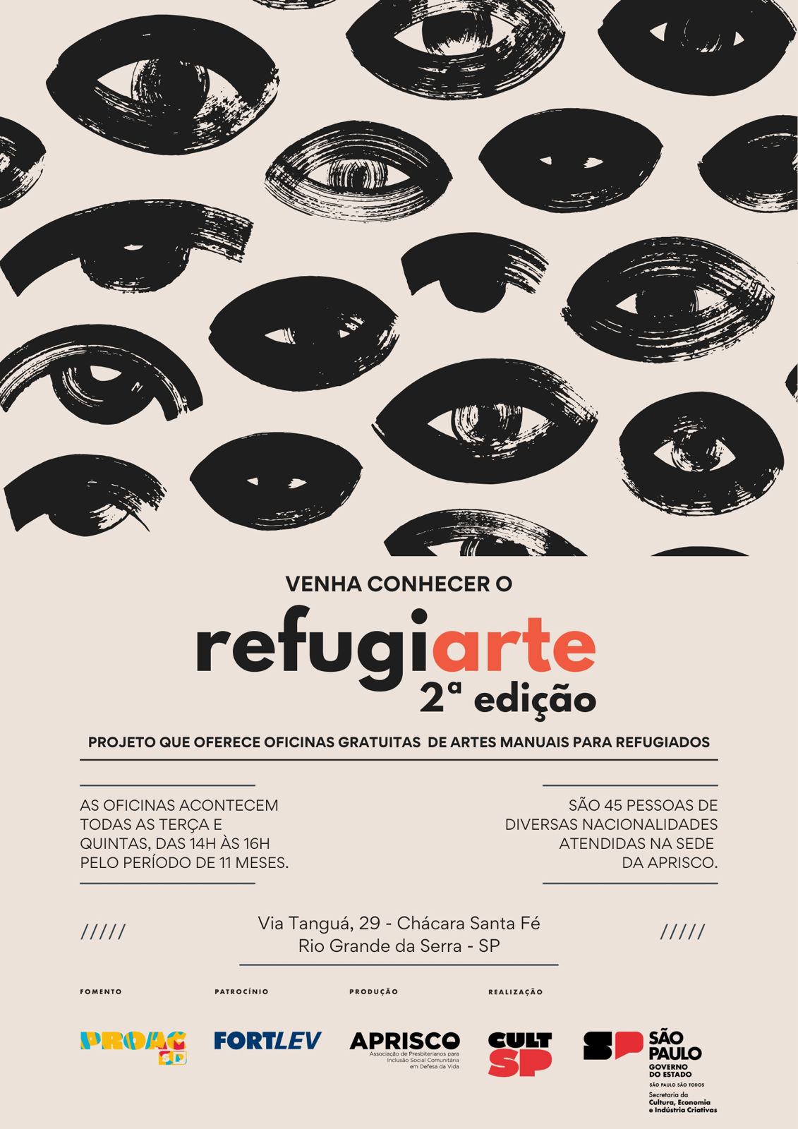 RefugiArte 2ª Edição é uma continuação do bem-sucedido projeto RefugiArte, dedicado às artes manuais e à cultura popular, destinado a um público em constante crescimento no Estado de São Paulo: os refugiados. Por meio de oficinas gratuitas, 45 refugiados terão a oportunidade de aprender a produzir peças de artesanato e esculturas inspiradas no folclore e na cultura popular do Brasil. O projeto terá a duração de 12 meses, com oficinas realizadas duas vezes por semana na cidade de Rio Grande da Serra, no Grande ABC paulista. Parte dos produtos confeccionados durante as oficinas será destinada aos próprios refugiados